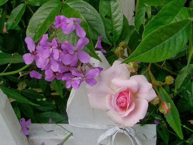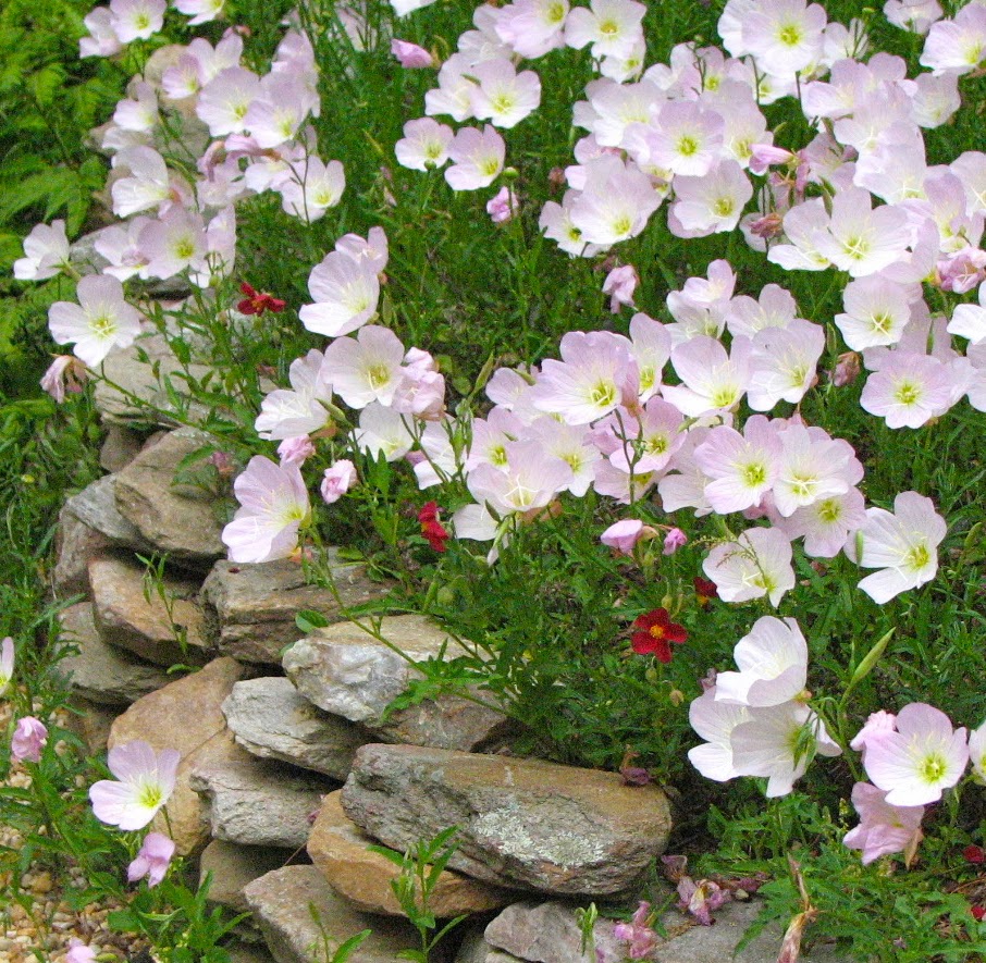 ReplyDeleteHi Janet! The thing about garden photos is they focus on one plant or one area at a time and you get the impression the entire garden is beautiful! :-) But in reality, this collection of photographs only captures a moment in time when everything looked its best. I've been putting in gardens since 1992 and changing their look from time to time. The "yellowish material" is pea gravel. Moles kept destroying the lawn, so we decided to dig it all up a couple years ago. The wire fence was put up to keep Gabriel, my Westie, from escaping--he can't jump that high. I always wanted a house with a white picket fence around it! This house did not lend itself to that, so we enclosed the side yard when our youngest was little (he's 26 now). I have the wonderful memory of him climbing under the back gate like Peter Rabbit :-). We had to put in a board and build up the threshold to keep him in! Later we dug up all that grass and put in a raised bed garden. Years later my husband built an arbor and we added pea gravel and slate to make a patio under it. That is a miniature rose and the slate we've dug up on our property. It's part of the problem we have growing things here on Braddock Mountain.